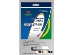 Features: Super 11 is a braided multifilament string bonded with specially formulated polyurethane resin in a thinnest gauge which provides superior elasticity. lively response and maximum power. The braided monofila-ment outer layer extends string life and gives the best control in play.